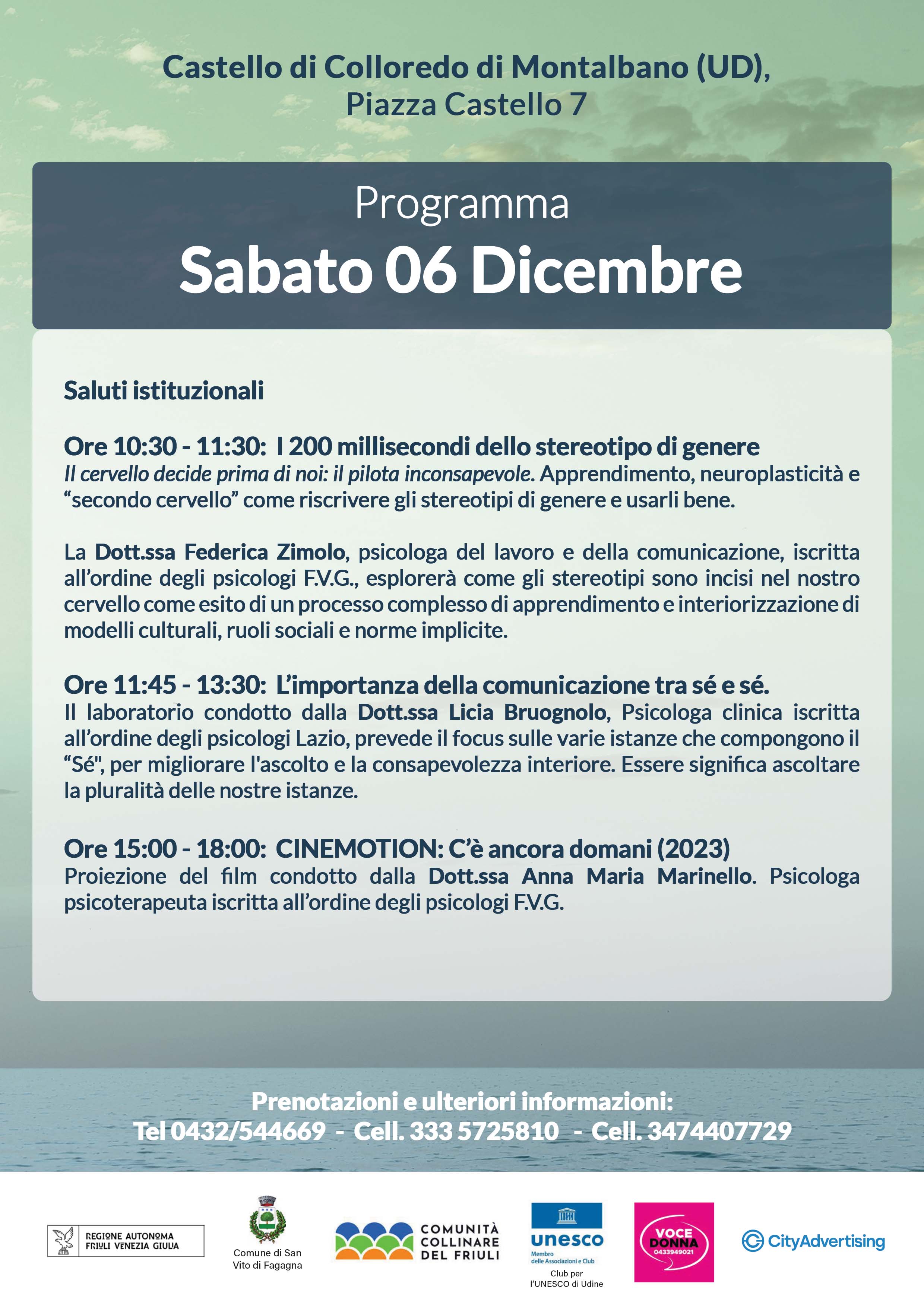 L’iniziativa, organizzata dal Comune di San Vito di Fagagna, è aperta alla cittadinanza e propone un programma articolato di laboratori interattivi, conferenze e attività esperienziali finalizzate a sensibilizzare i partecipanti sui temi degli stereotipi di genere, della comunicazione interiore e degli effetti terapeutici del suono.