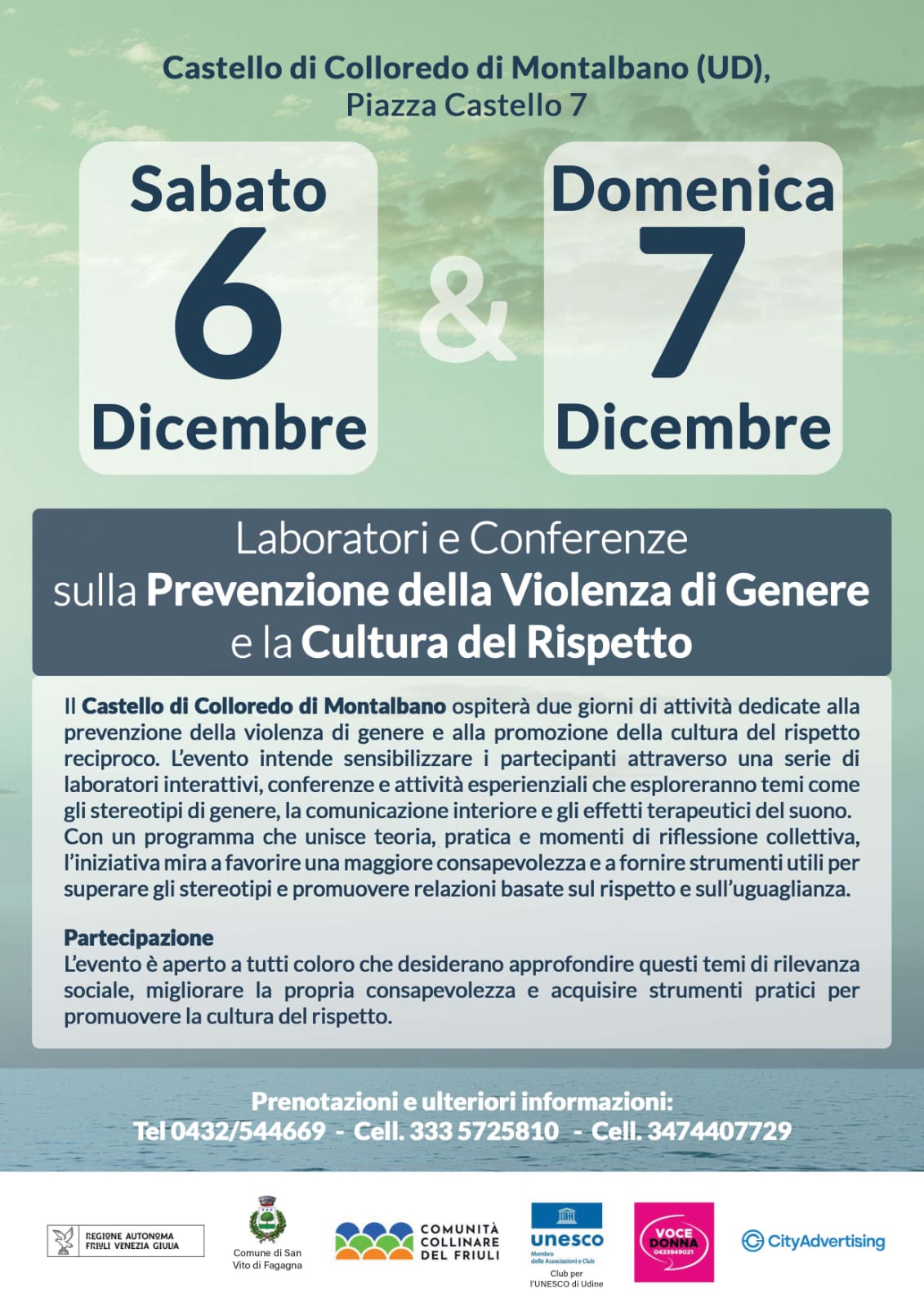 Il Castello di Colloredo di Monte Albano ospiterà due giornate dedicate alla prevenzione della violenza di genere e alla promozione della cultura del rispetto reciproco.